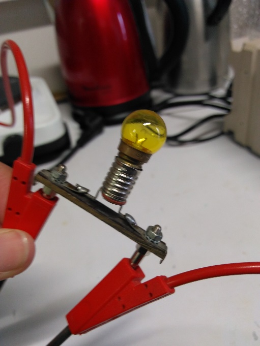 une petite ampoule à branchement en pointe emboitable au fils électrique.